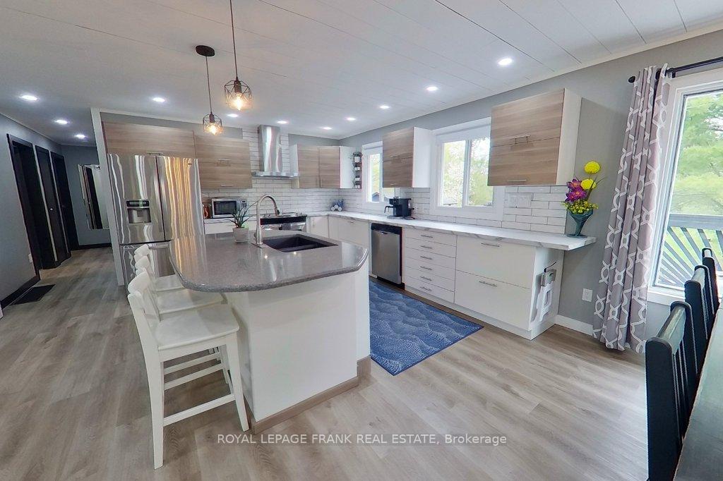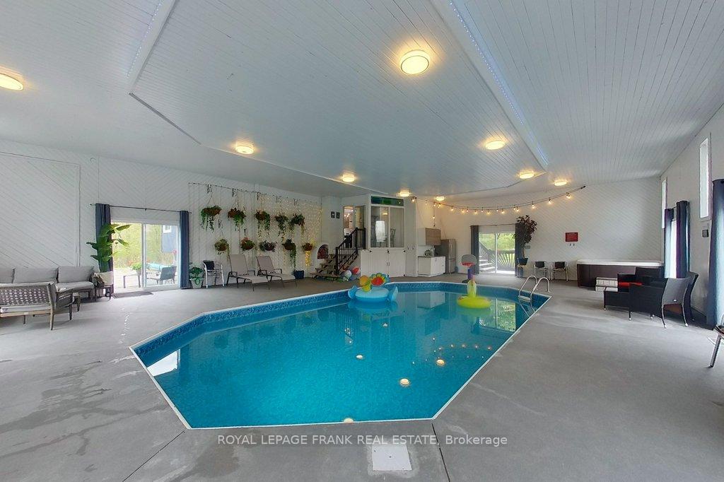Escape to this captivating raised bungalow, nestled in a peaceful natural setting. Featuring 3+1 bedrooms, 3 baths and a 2nd kitchen. This home offers a luxurious lifestyle with its stunning indoor heated saltwater pool - enjoy summer year-round! Relax in the hot tub or unwind in the infrared sauna. The main floor offers 3 bedrooms and 2 bathrooms, complemented by an open-concept design. The kitchen, dining area, and living room flow seamlessly together, illuminated by an abundance of natural light streaming through the large main floor windows. The basement is fully equipped for multi-generational living offering a bright, finished lower-level with a walkout, a kitchen, a 4th bedroom and an exercise room. The property also features a generous 36' x 28' insulated shop with a 16' ceiling and 2 overhead doors, the front is 12' x 12' and the back is 8' x 8'. Attached to the shop is an oversized 2-car garage. Additionally, a garden shed is included to conveniently store your tools and outdoor equipment. With a Pre-List Home Inspection completed, this unique property offers boundless opportunities. Don't let summer end - live it here every day of the year!